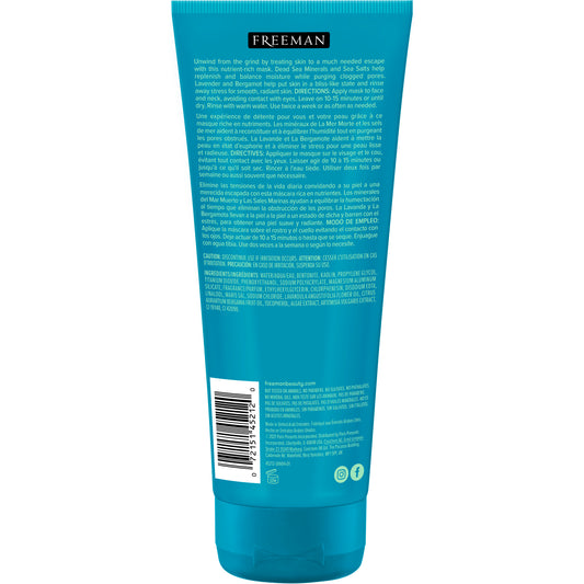 Freeman Anti-Stress Dead Sea Minerals Clay Facial Mask is made with natural, botanical ingredients. This calming mask instantly absorbs excess oil while clarifying and purging clogged pores. Dead Sea Minerals contain natural supplements that are essential for maintaining healthy skin. Sea Salts help replenish and balance moisture. Lavender and Bergamot promote relaxing aromatherapy. Rinse away the mask to reveal smooth, radiant, healthy looking skin.