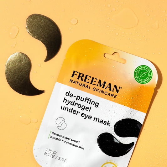 The Freeman De-Puffing Hydrogel Under Eye Mask combines hyaluronic acid and magnesium to combat tired, puffy eyes for the perfect morning pick-me-up. De-puff and soothe your undereye area with ingredients such as hyaluronic acid and magnesium, which work together to calm the skin. Our hydrogel eye mask is perfect for on-the-go, travel, or at home. Pop them on during a long flight or use them in the morning after a night with no sleep. These De-Puffing Hydrogel Under Eye Mask help you relax and help you achieve a brighter complexion. Just place the gel eye masks under your eyes, and let the serum work its magic. You can also store the mask in the fridge for an added cooling benefit! Freeman Masks are made without any harsh chemicals and their ingredients are free of parabens, sulfates, silicones, phthalates, and mineral oils.