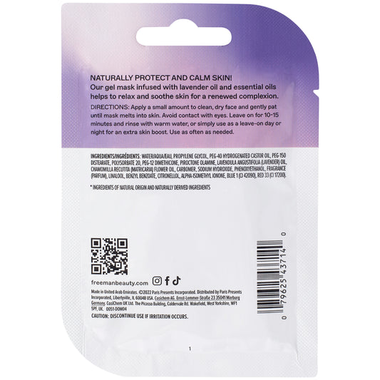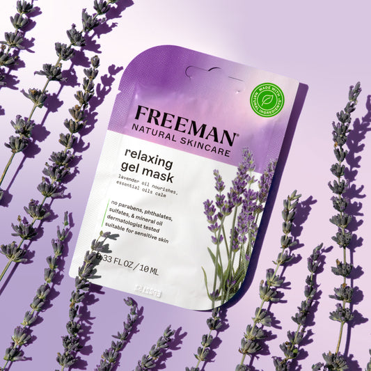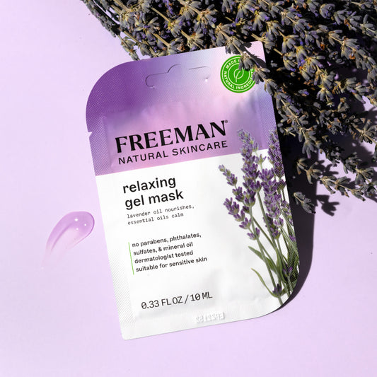 Masking brand you love now natural. Naturally derived simple skincare. Our Freeman Natural Skincare Relaxing Lavender & Essential Oil Gel Facial Mask is infused with lavender oil and essential oils, which helps to relax and soothe skin for a renewed complexion. Lavender Oil is packed with antioxidants, which help to protect and nourish skin. Lavender oil aroma is also known for its relaxing and calming abilities. Chamomile flower oil also helps to calm irritated skin. All formulas are made with natural ingredients. Our Naturals Collection was created to bring natural ingredient benefits into skincare solutions with the nasties. We know clean beauty can be confusing. Our goal is to keep our skincare simple. Clear, inclusive, and accessible for the everyday consumer. The same good-for-you ingredients used in your diet also make a huge difference in your skin. Easy to pronounce and provide the most natural benefits.