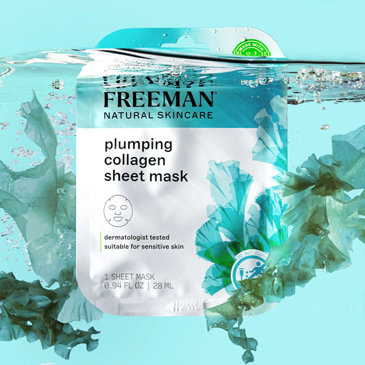 The Freeman Plumping Collagen Facial Sheet Mask is your go-to skincare essential for a natural, radiant, glow. This facial sheet mask is formulated to help deliver nutrients and minerals that can restore your skin’s natural radiance, nourish, and balance skin pH. It also has bonus anti-aging properties for a youthful glow! The Plumping Collagen mask is great for travel because it’s easy to bring on-the-go! You can even wear it on a long flight to prevent skin from getting super dry, or you can put one on before applying makeup for extra soft, supple skin. Just apply this face mask to clean skin, leave it on for 15 minutes and then remove it and let the excess product soak into your skin. The Plumping Collagen Sheet Mask can be used as often as needed. Freeman Sheet Masks are made without any harsh chemicals and their ingredients are free of parabens, sulfates, silicones, phthalates, and mineral oils.